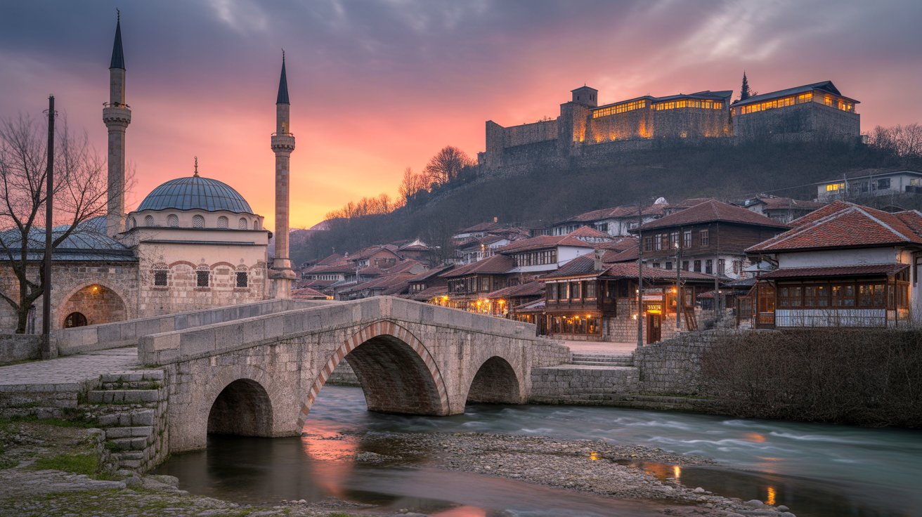 Prizren, Kosova'nın kültürel başkenti sayılıyor — Pristine siyasi başkent, Prizren ruhsal başkent. Osmanlı dönemi çarşısı, Bistrica Nehri üzerindeki taş köprüler, tepedeki kale ve camiler — bunlar farklı dönemlerin katmanları, hepsi bir arada.